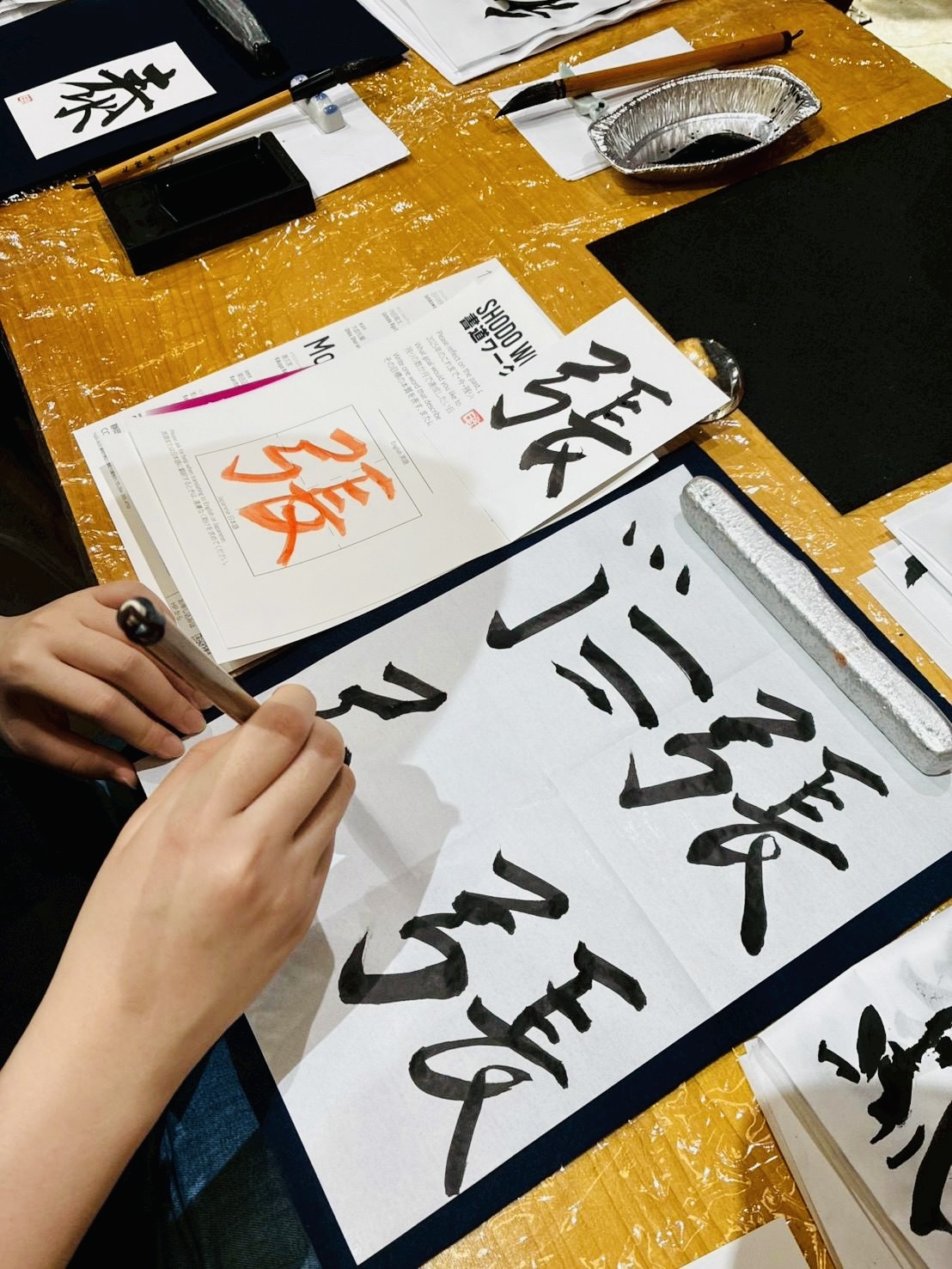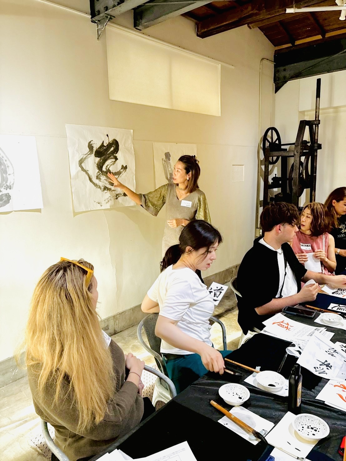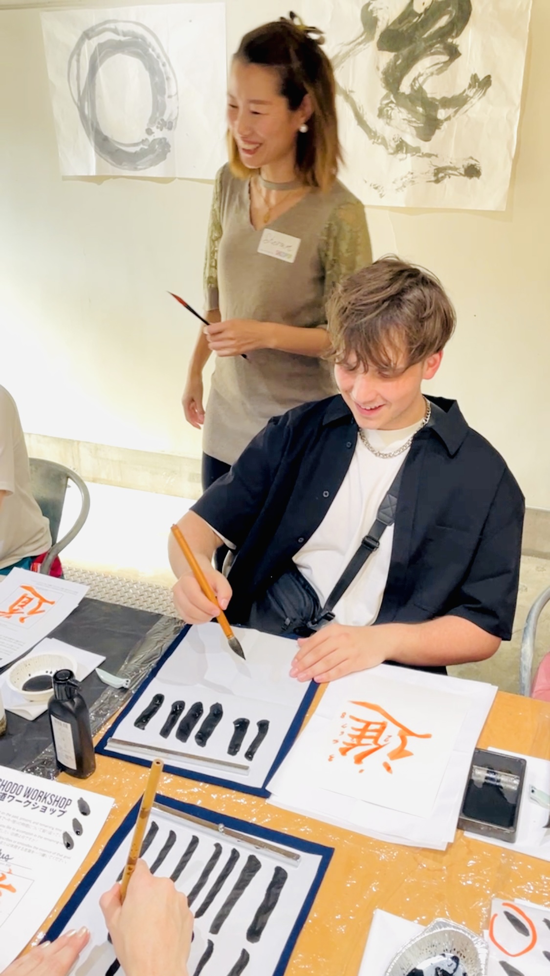 “Shoran is such an amazing artist. I love her oversized calligraphy works. The boys and I were lucky enough to try our hand at “matchasho” (traditional calligraphy using green tea) with her today. It was a fun cultural experience for all of us…”