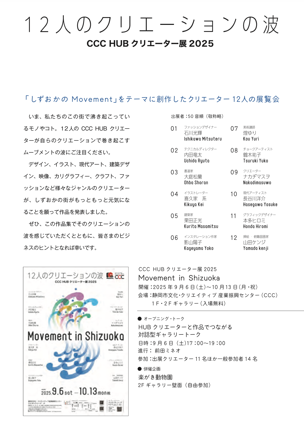 会場:静岡市文化・クリエイティブ産業振興センター(CCC) 会期:2025年9月6日(土)〜10月13日(月・祝)